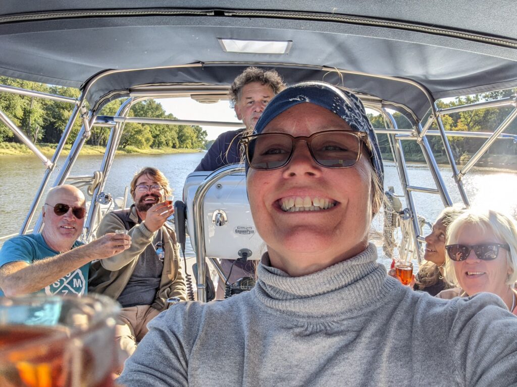 The Illinois river had some amazing anchorages and because we were traveling with a group of new friends (including a Swedish couple who lived in Cape Breton for 5 years in the 80s), every night was a gathering on someone’s boat for dinner or drinks or both. We also used some free city docks to tie up in the Illinois river. They often had very little water coming into them and nothing to tie onto on the dock, but they were free and safe so we used everyone we found, and we met a lot of people at those city docks. Every dock or marina and sometimes anchorages would be full of loopers – people doing the great loop of America route that takes them down the inland river system, around Florida and back up the east coast to the Erie canal and back into the Great Lakes.