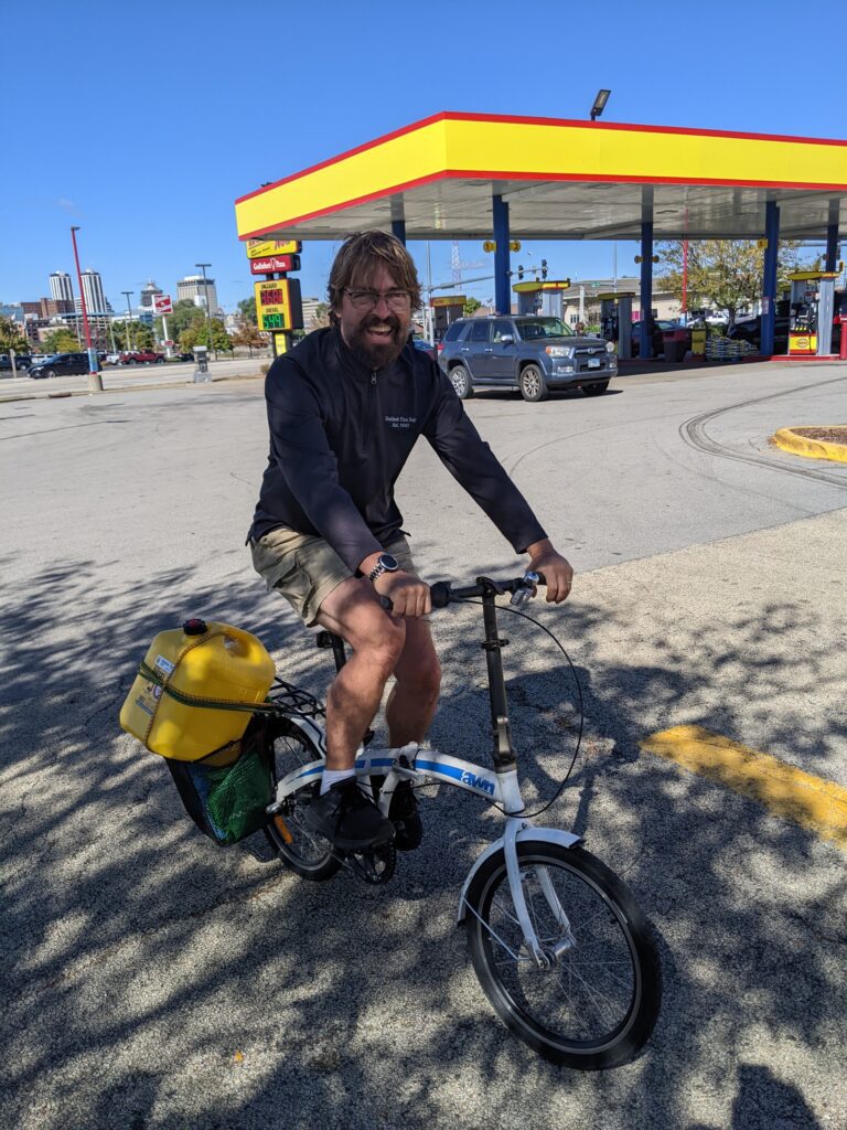 The other big issue for us with the water levels being so low was that we couldn’t get fuel or pump outs very often. Our black water tank and water tanks get us through s little more than 2 weeks with careful use. Our diesel we weren’t so sure about since we had mostly sailed since buying the boat. Our tank is 50 gallons, which we did not get filled before leaving Chicago because we were being stupid and thought that we would have a lot of chances to do so further down the river. By the time we got to Peoria, Illinois, we knew we were going to have trouble finding a place to fill up. At that time we were traveling with our friends from Sweden who happened to have folding bikes onboard. We borrowed their bikes and brought our 5 gallon diesel jug to a gas station. After putting that into the boat, Douglas decided to go back and get another 5 gallons. We felt pretty good about that with our calculations, but when we finally got gas in Alton, near St Louis, it took 46 gallons to fill it!