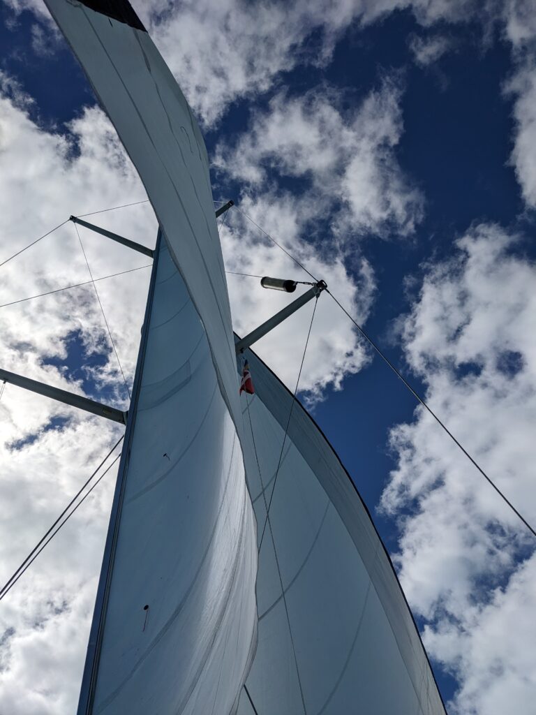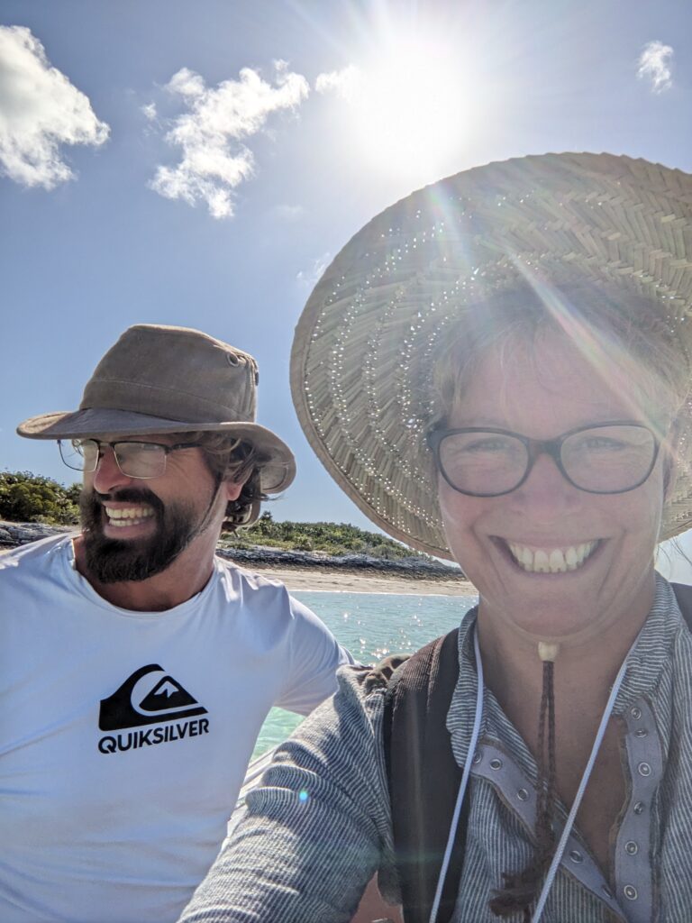 We only spent one night in Shroud Cay and then moved on to Wardwick Wells. We had great wind and a great sail there, although it was less than 20 miles away. We had reserved a mooring at the National park mooring field there. We called before entering the bay and received instructions to get to our mooring: “Come all the way through to the very last moorings, it will be tight but you shouldn’t run aground if you stay in the channel….” We couldn’t believe our eyes when we came through the passage to the bay. There were boats closely spaced in a large half circle and the channel ran right next to them.