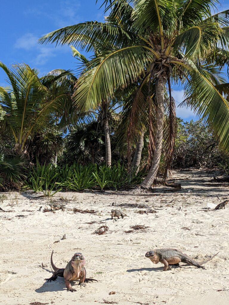 Highborne Cay was interesting, and we stayed there for a few days swimming, walking and visiting our friends who were in the marina there. During our time at Highborne, we visited the Iguana island which is a tourist attraction where people go and feed the wild iguana population. As a result of overfeeding the population has exploded. As soon as we arrived at the beach we were surrounded by iguanas; a lot of iguanas. It was creepy, they were quite aggressive and had no real fear of people. In fact, the next day we heard that someone had been bit by one while trying to feed it.