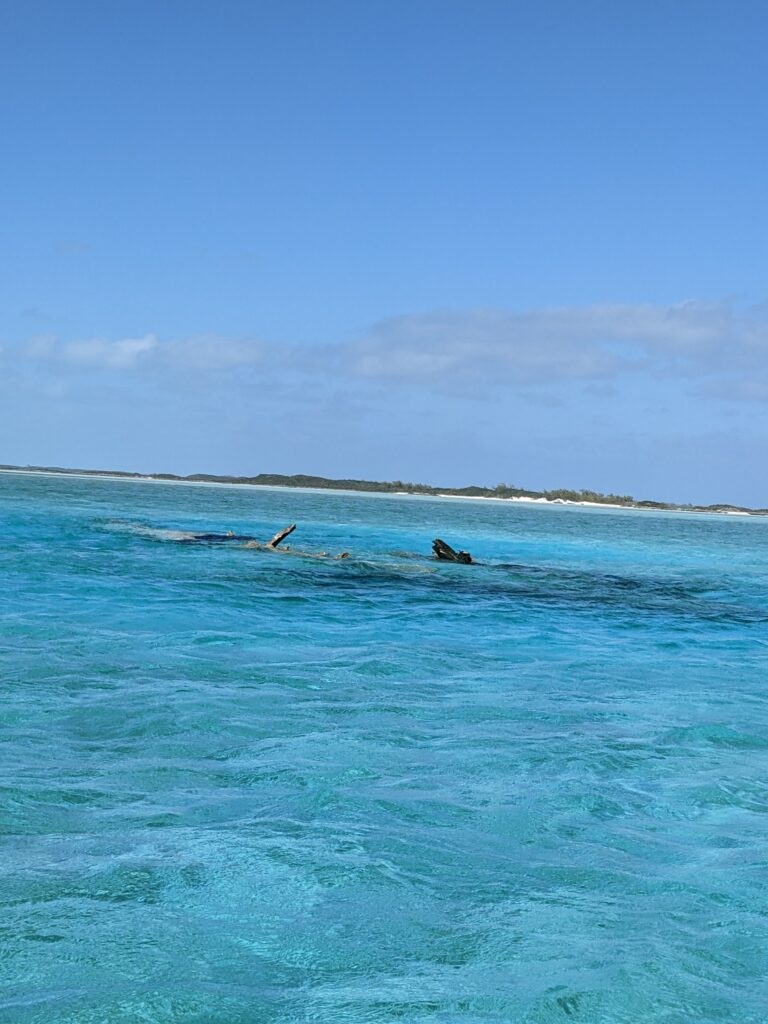 From Highborne Cay we went to Norman Cay to see the famous Pablo Escabar plane crash which is now used as an artificial reef. It was amazing to snorkel through the wreckage, and it is in very shallow water so no need to dive down. There were so many fish there that it felt like snorkeling in a fish tank. There were fish of all colors and sizes. Some of them were so used to people that they would swim right up to you! Sadly I did not get any underwater pictures, but in the picture below you can see part of the airplane sticking out of the water at low tide.