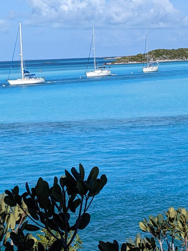 We were excited to get there and set out from an anchorage near Spanish Wells early on February 14th, after leaving our dock at high tide the previous afternoon. We had some good wind and enjoyed the sail and motor sail to our first anchorage in the Exumas at Highborne Cay. It was a 60 NM trip and we dropped anchor in the early evening in a very crowded anchorage.
