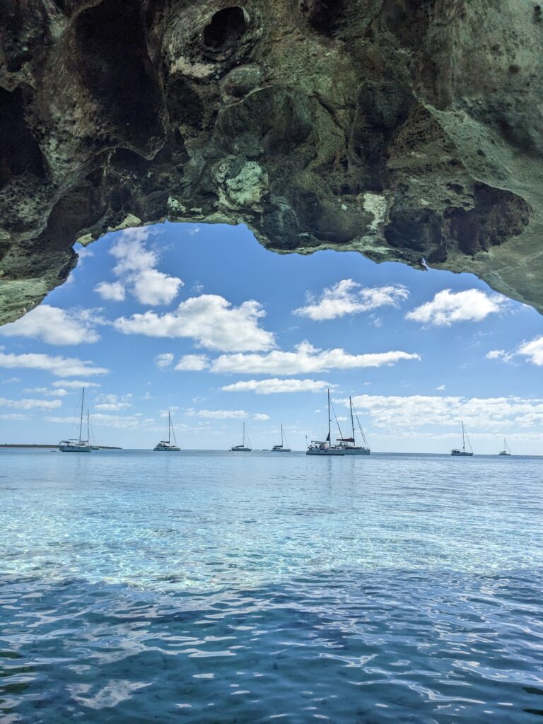 We spent a few days at Staniel Key waiting for our parcels to arrive, doing laundry, provisioning and snorkeling at the Thunderbolt grotto. The grotto was amazing! It was featured in a James Bond movie, but the movie did not do it justice! To enter the grotto you swim under the side wall and then emerge inside a cavern that has a hole in the roof. There were thousands of fish swimming around our feet and the ceiling had a lot of interesting formations as well as bats hanging in the ceiling.