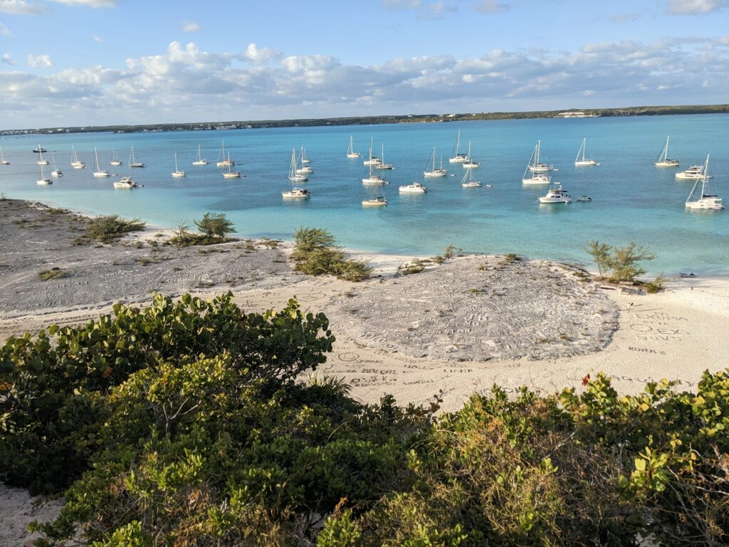 We came to Georgetown at the southern end of the Exumas after our short trip to Cat Island. Georgetown is one of the most popular destinations in the Bahamas. Many Americans and Canadians make this their port to spend the winter months in the Bahamas. We mostly motored but it was a pleasant day and easy entrance to the mooring field where we rented a mooring for our first few days in Georgetown.