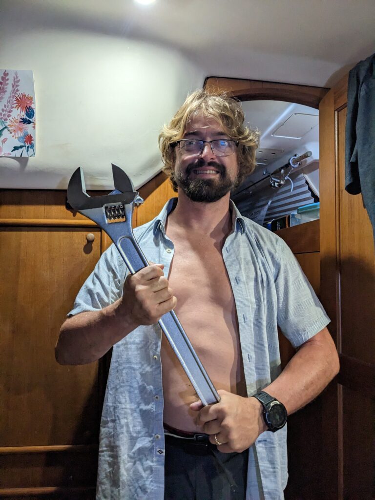 We found it very complicated to figure out the weather because the cape map showed high chances of lightning basically every night. We ended up contacting the well known route planning guy, Chris Parker to help us out. He found us a window and gave us very specific instructions on when to leave and so on. When we attempted to leave on the decided morning, we got about 10 minutes our and our packing started to overheat again. We came back into the marina and got a technician to come look at it. He said it was fine, so Douglas just adjusted the packing nut. And cleaned the shaft and lubed everything again. This time it worked!