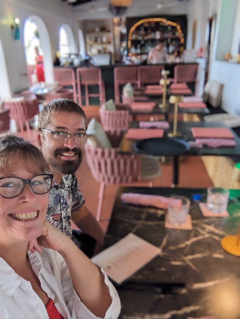As the days wore on we ended up finding some amazing spaces to pass the time, including the the Pink Palm hotel and restaurant. Pink Palm was an amazing find, that we wish had happened on the first day. Nestled in the hillside at the top of town, it offers amazing food and drinks, great views of the water and a fantastic vibe created by embracing and modernizing its seventies aesthetic.