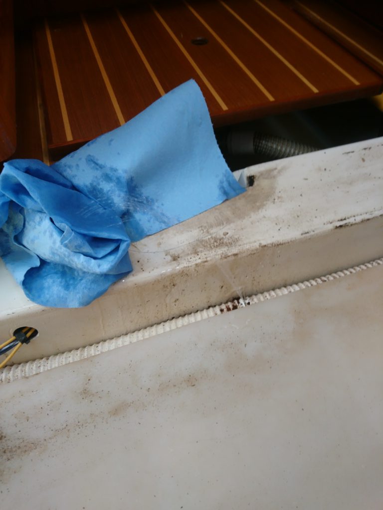 As I began to do the major cleaning I began writing a list of all the things that I was finding that didn’t seem right: water under the floor, windows that didn’t open properly, sump pumps that didn’t seem to run, leaks in other areas, a fridge with wide ranging temperatures, sinks that were leaking… And so on… When I started cleaning all the lines and halyards (ropes and more ropes), I realized that what had looked like dirt that would clean off was actually damage from mildew that made every rope on the boat brittle and start to disintegrate while being cleaned.